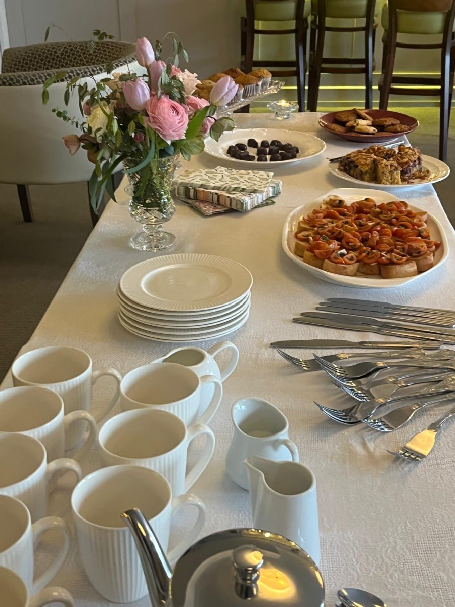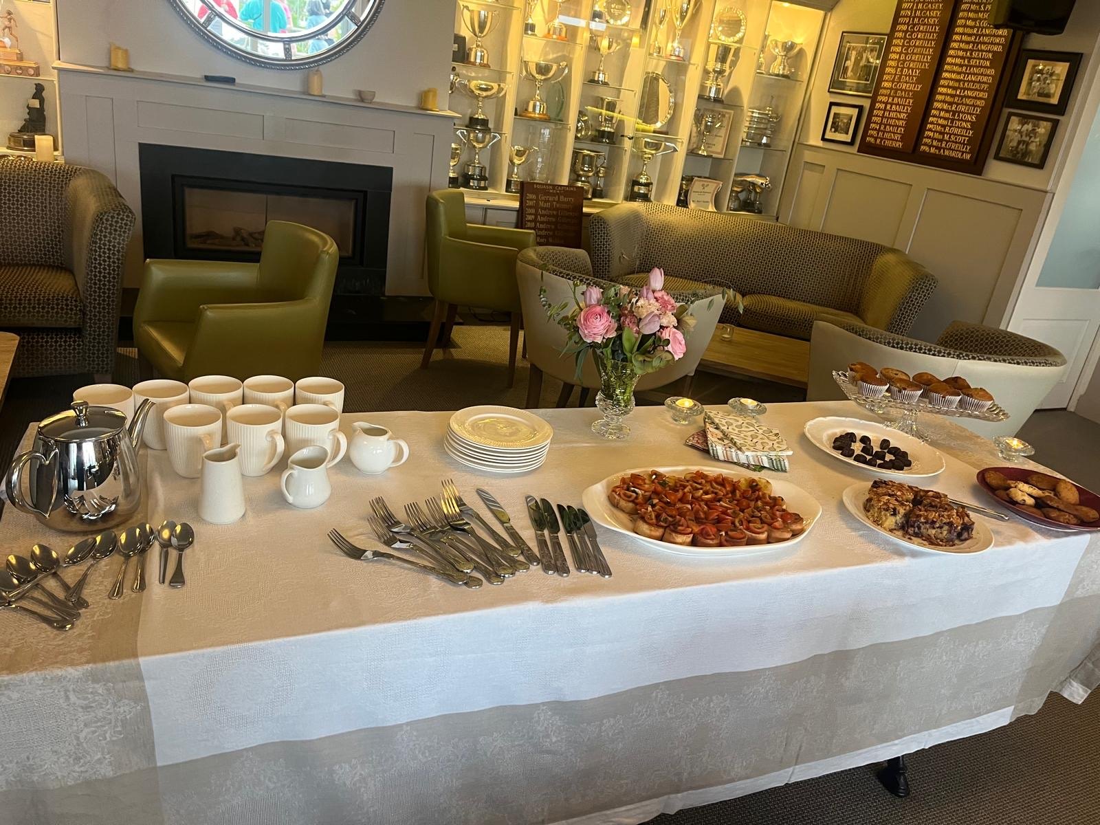 Off court due to injury, Sarah Beth Casey once again set the standard for hospitality, hosting a beautifully presented tea party that added a real touch of class to the occasion. By the time play began at 4.30pm, the table was already perfectly laid with a crisp white cloth and stunning floral arrangements that looked almost too perfect to be real! Gary’s Gourmet Pizzas and an array of other treats were thoroughly enjoyed by all. Many thanks also to Linda Vidal for her biscuits, flowers & help in making everything run so smoothly too.